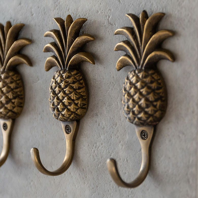 南国リゾートの雰囲気漂う、パイナップルデザインの真鍮フック。