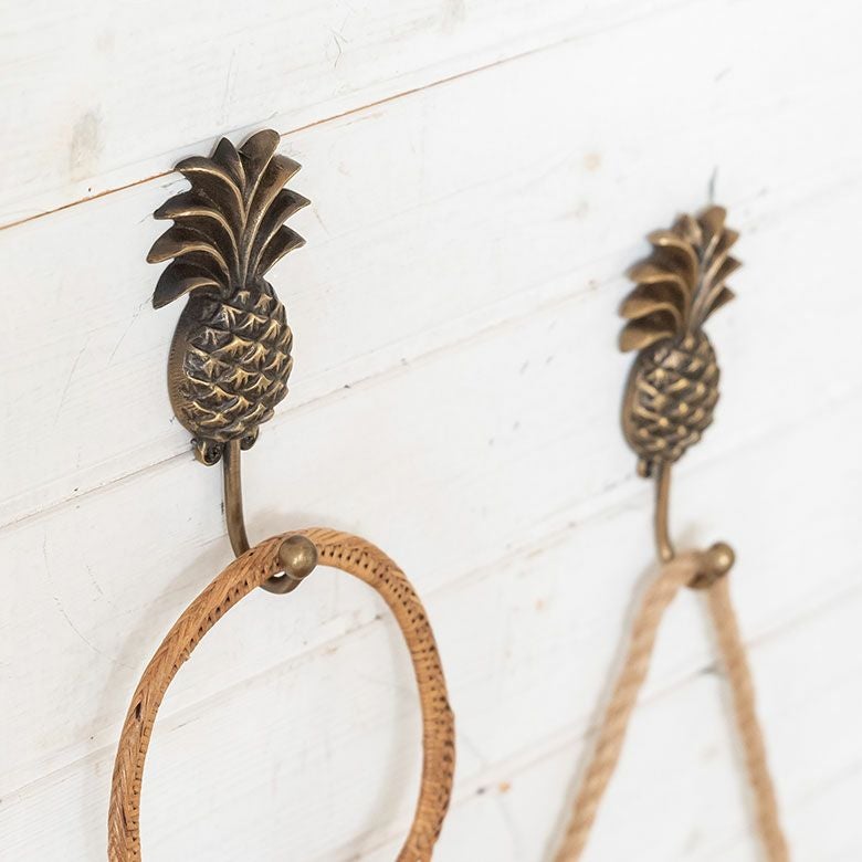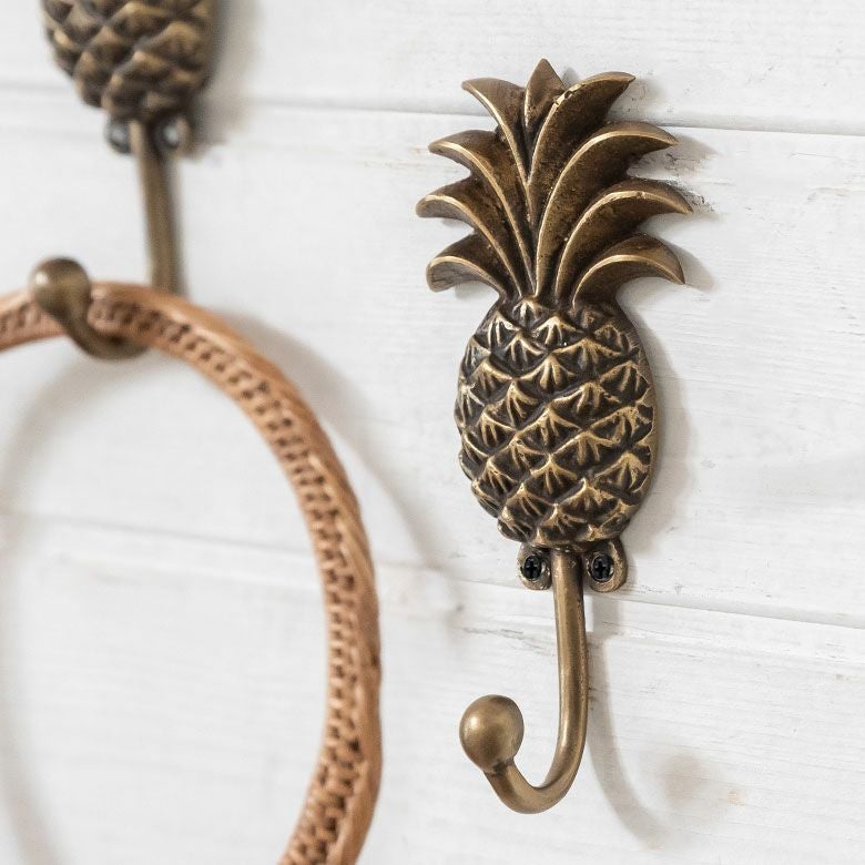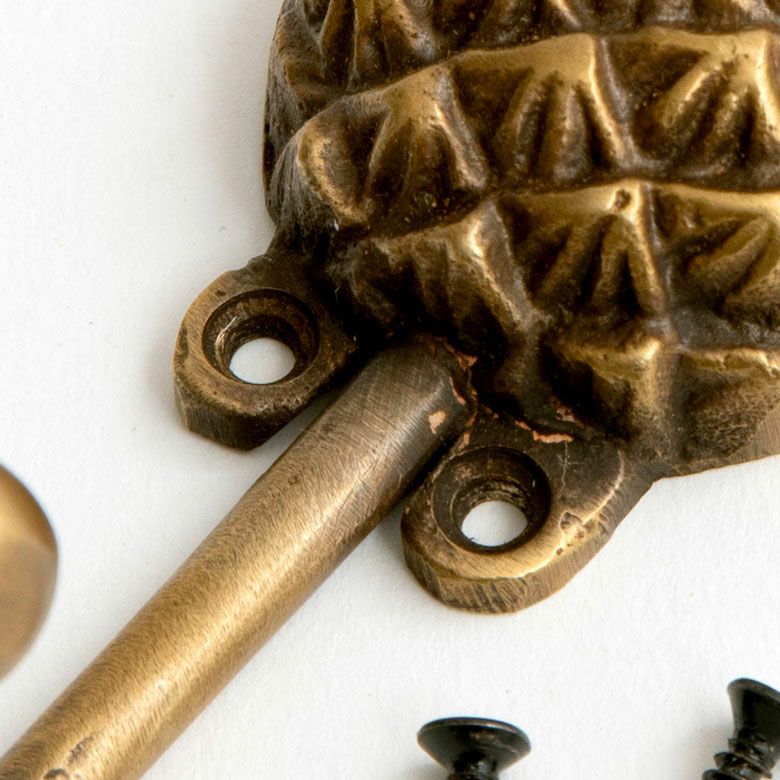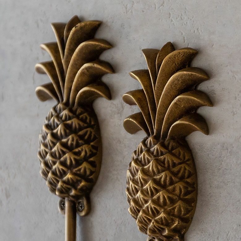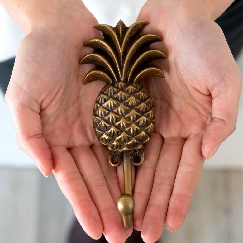 南国リゾートの雰囲気漂う、パイナップルデザインの真鍮フック。