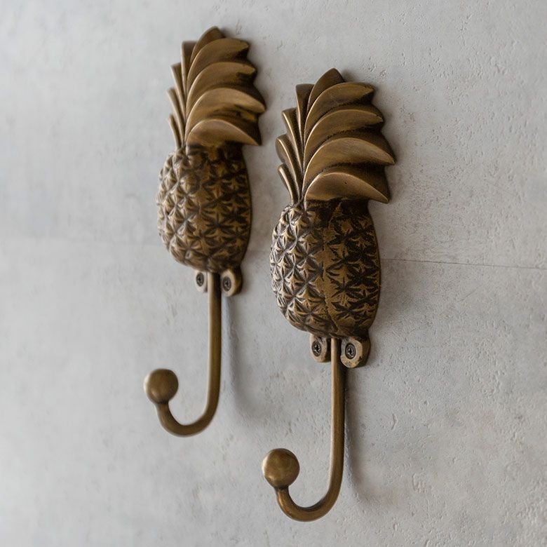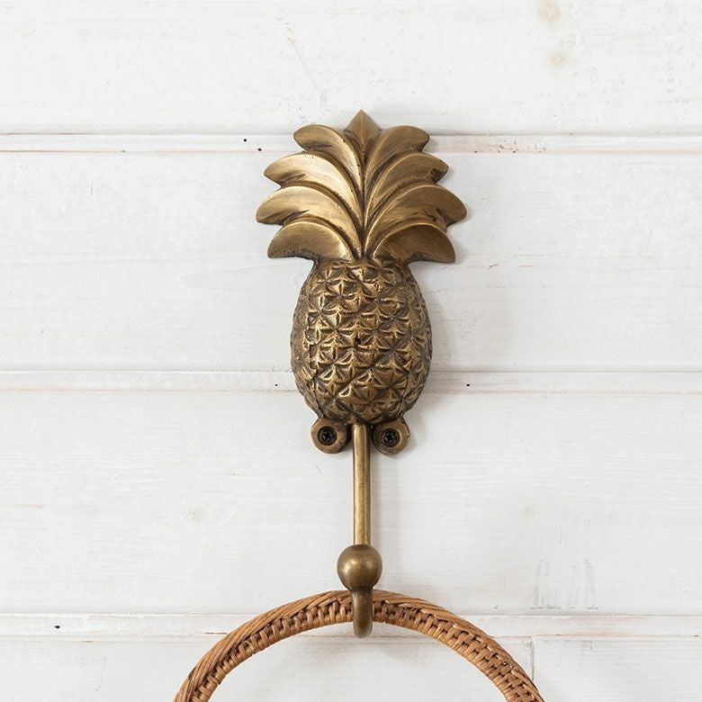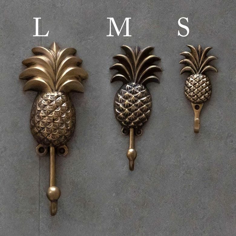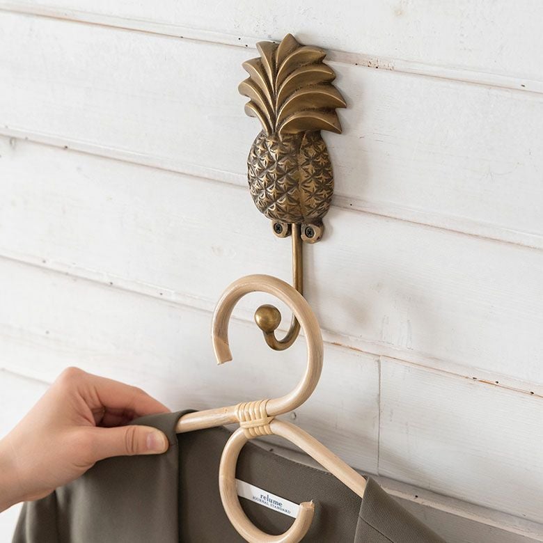 南国リゾートの雰囲気漂う、パイナップルデザインの真鍮フック。