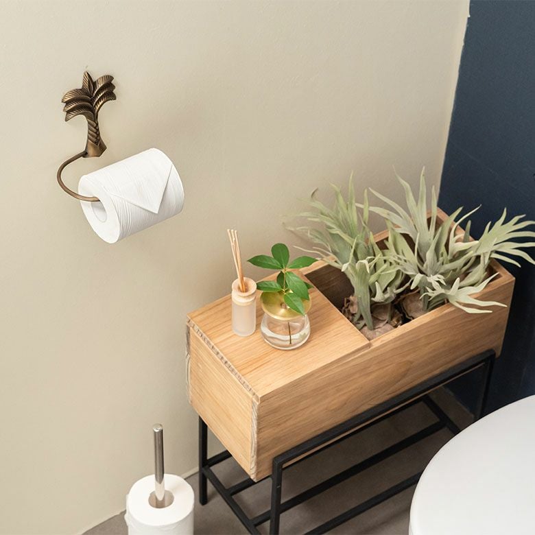 南国リゾートの雰囲気漂う、パームツリーデザインの真鍮ペーパーホルダー。