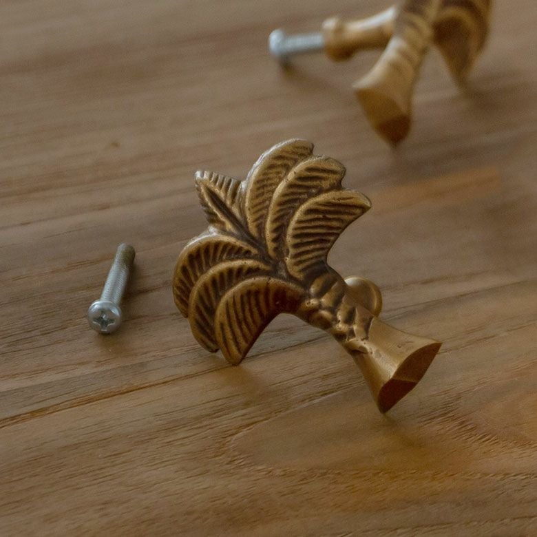 南国リゾートの雰囲気漂う、パームツリーデザインの真鍮ハンドル。