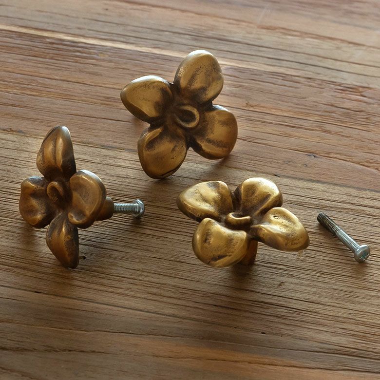 オーキッド(蘭の花)デザインの真鍮ハンドル