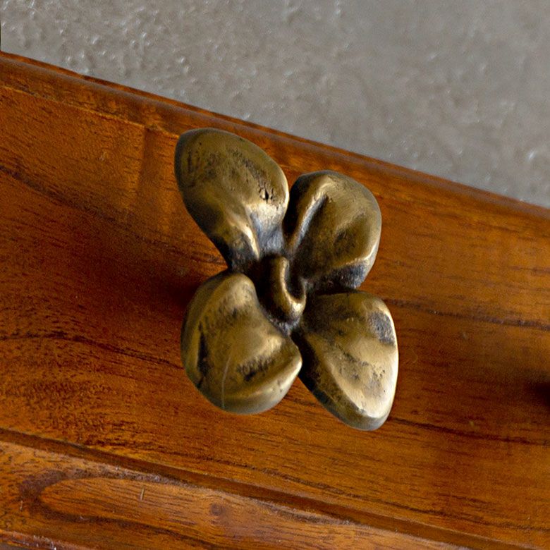 南国リゾートの雰囲気漂う、オーキッドデザインの真鍮ハンドル。