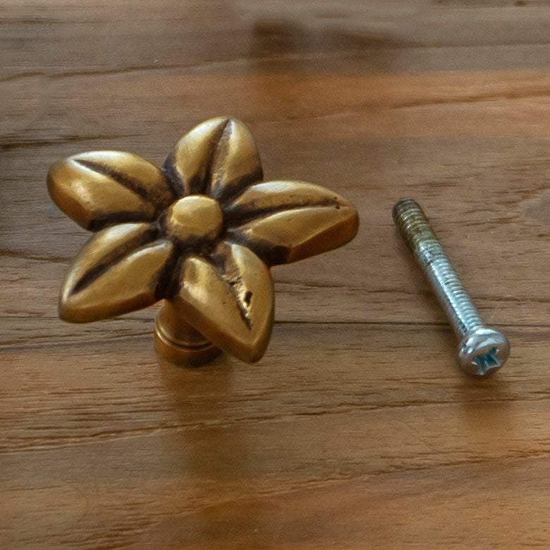 プルメリアデザインの真鍮ハンドル[Sサイズ]
