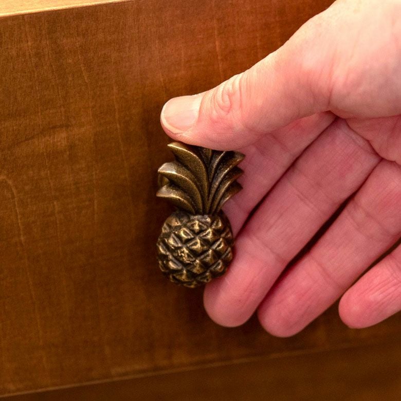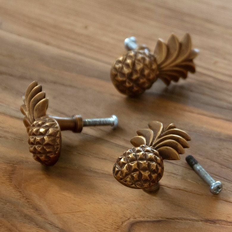 南国リゾートの雰囲気漂う、パイナップルデザインの真鍮ハンドル。