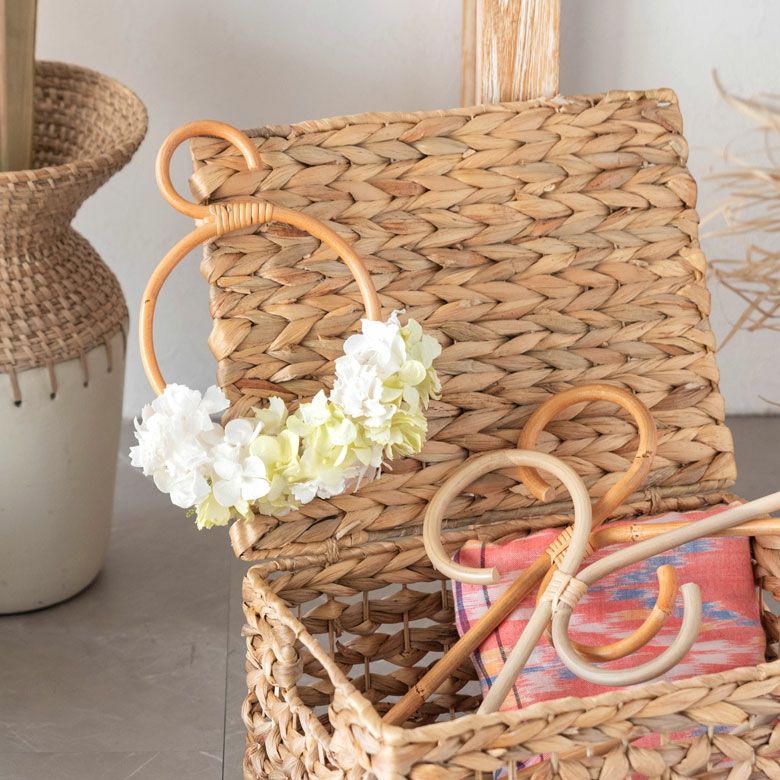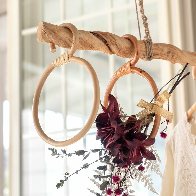 フェイクフラワーを取り付けて、リースのように飾っても素敵。