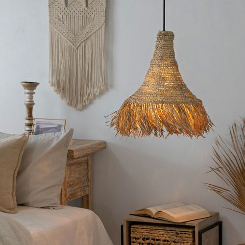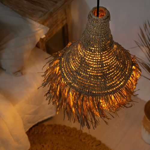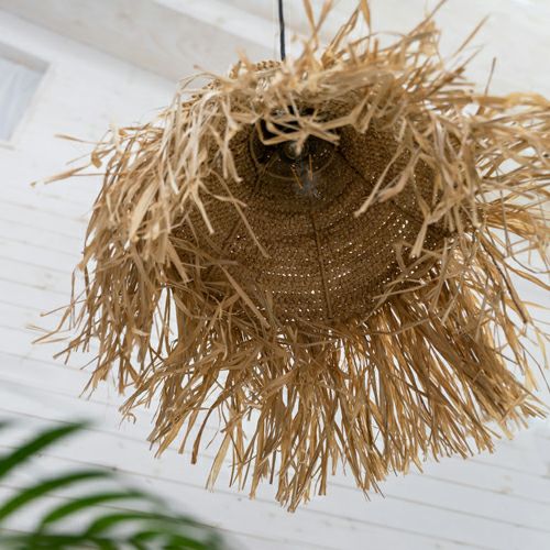 椰子の葉から採れるナチュラルなラフィアを、丁寧に編み上げたペンダントライト。
