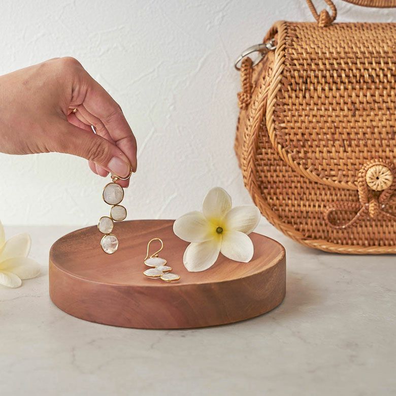 アクセサリーや鍵など細々した物を置ける高くて小さめタイプ(直径13cm、高さ4.5cm)に対し