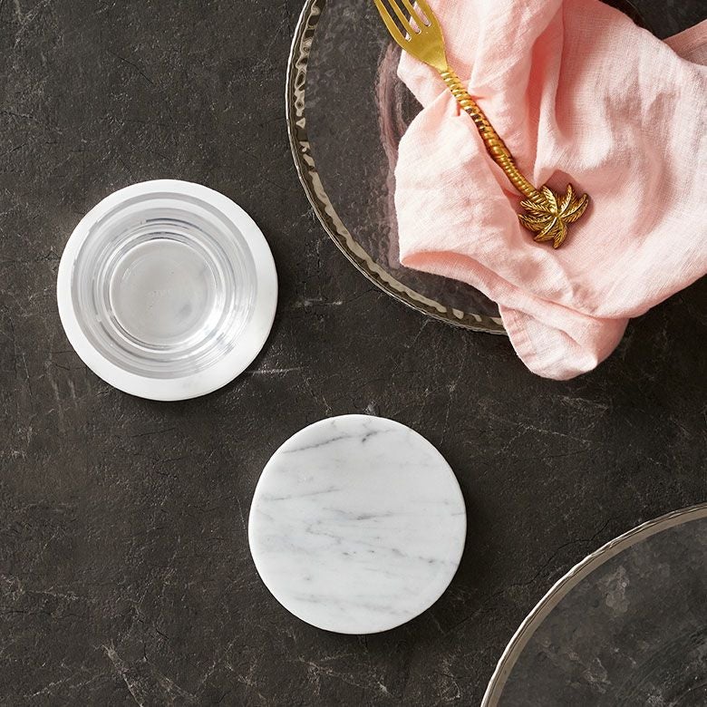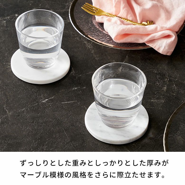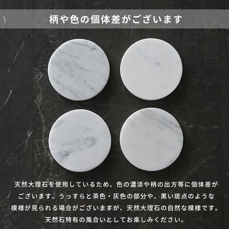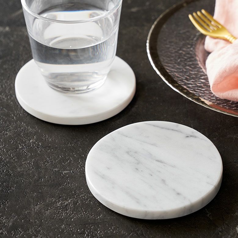 ・塗装や着色を施さない、自然そのままの大理石「ホワイトカララ」のコースター、2枚セット