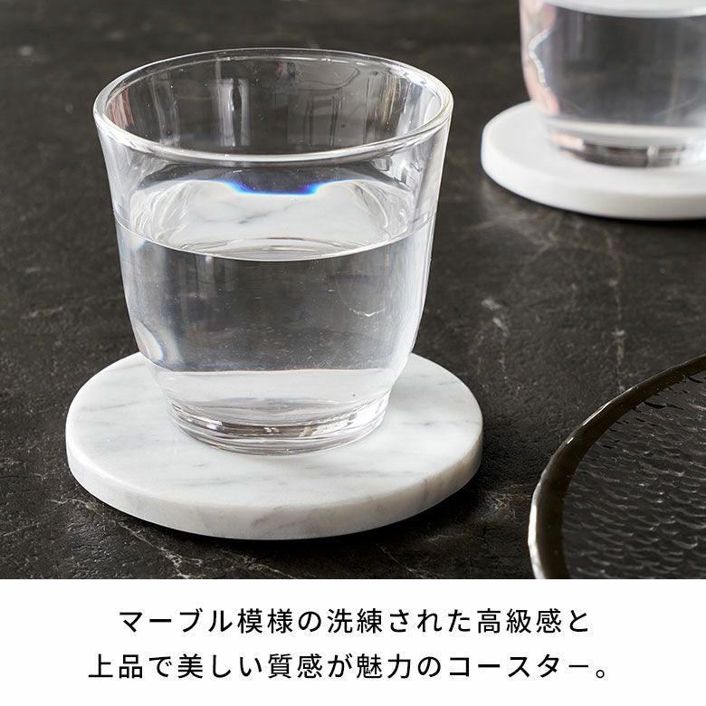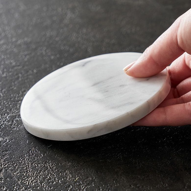 マーブル模様の洗練された高級感と上品で美しい質感が魅力のコースター。素材には、歴史的建造物や彫刻にも用いられる高品質な大理石「ホワイトカララ」を使用。職人が手作業で丁寧に磨き上げた滑らかな表面は、触れるたびに上質さを感じさせます。