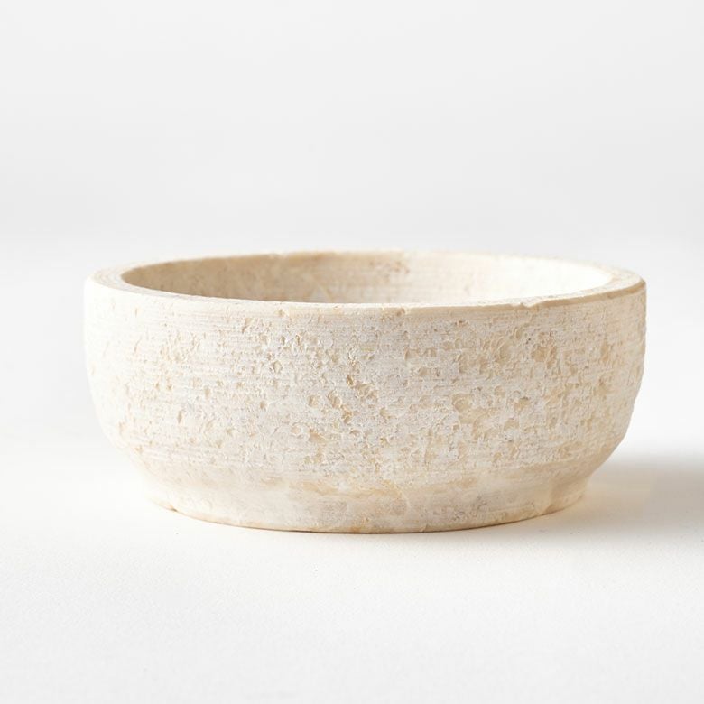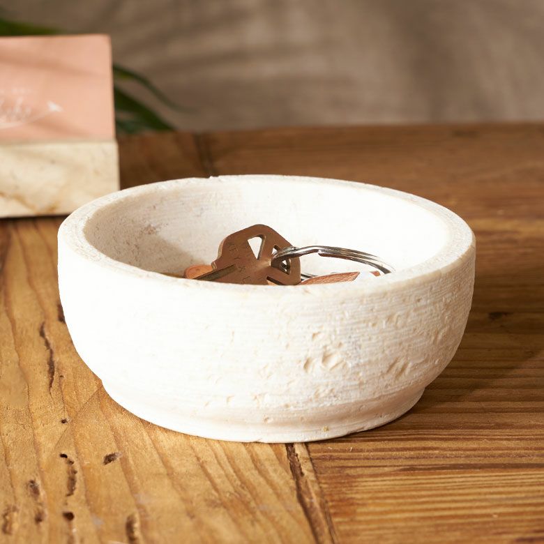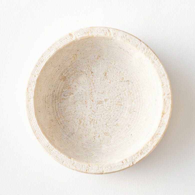 インドネシア・トゥルンガガン地域の厳選された、白・ベージュ基調の天然大理石を使用した小物入れトレイ。一般的なツヤのある大理石の質感ではなく、石そのもののプリミティブな素材を活かしたマットな質感が魅力。