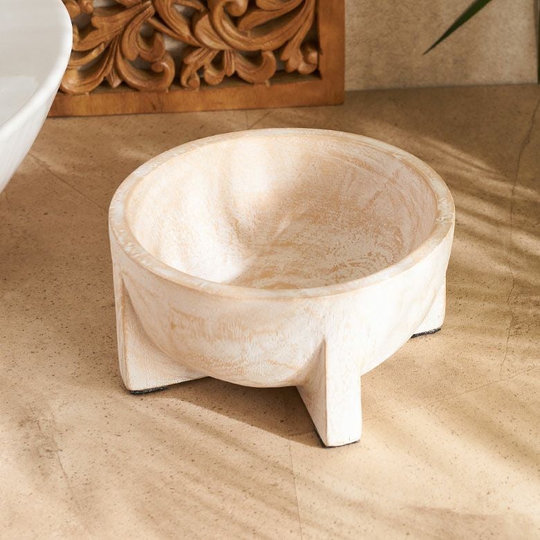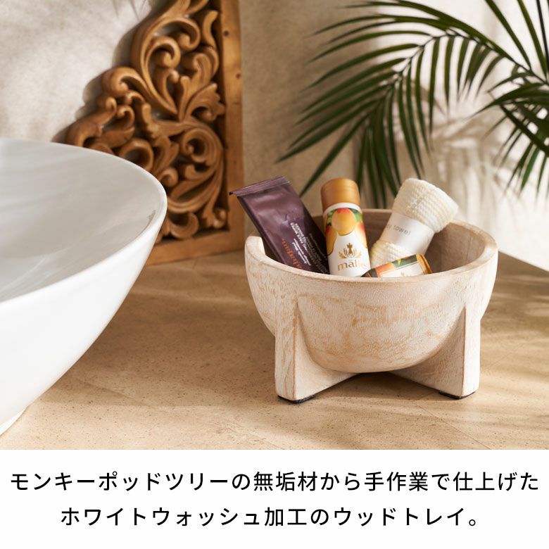 モンキーポッドツリー(スワールウッド)の無垢材から、手作業で仕上げたホワイトウォッシュ加工のウッドトレイ。