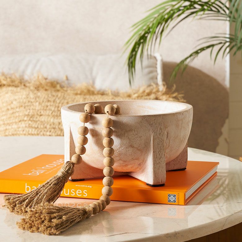 天然木の独特な質感とホワイトアイボリーの色合いが、エスニックスタイルの多様な文化的要素と融合します。手作り感のある質感が、異国の雰囲気を強調します。