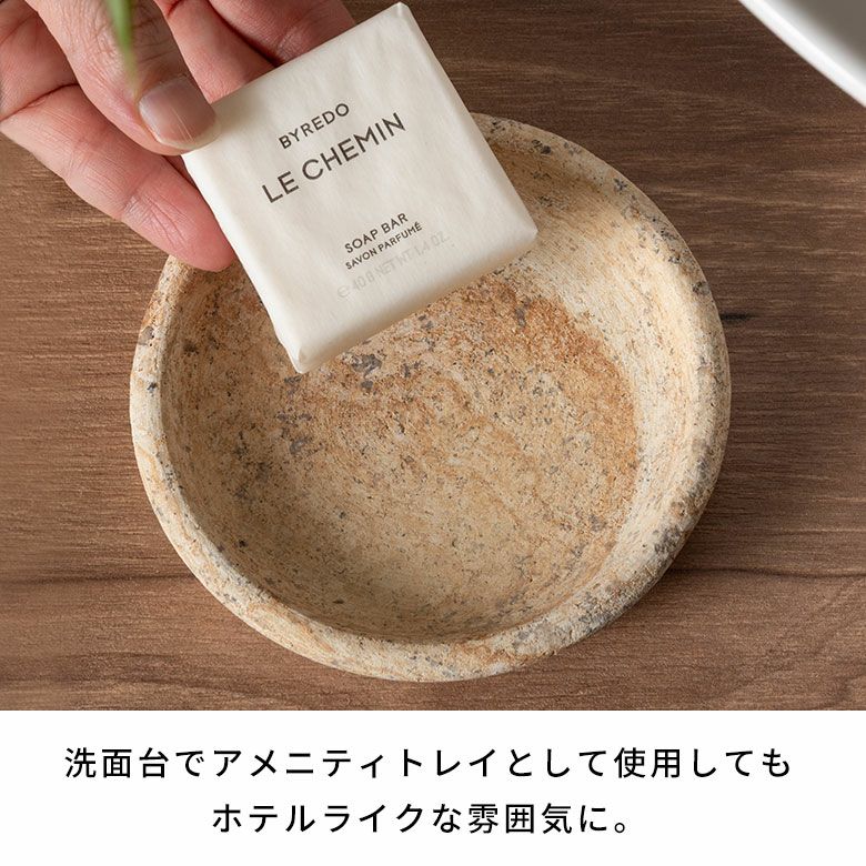 インドネシアの自然環境が育んだサンドストーンを使用した、小ぶりなディスプレイトレイ。