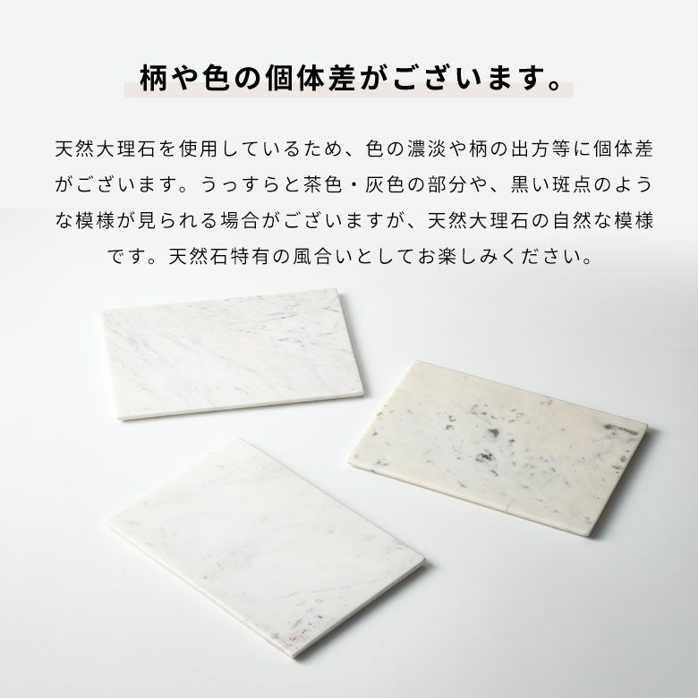 色の混ざりや模様など、石の表情が一つ一つ異なる天然の大理石を使用。