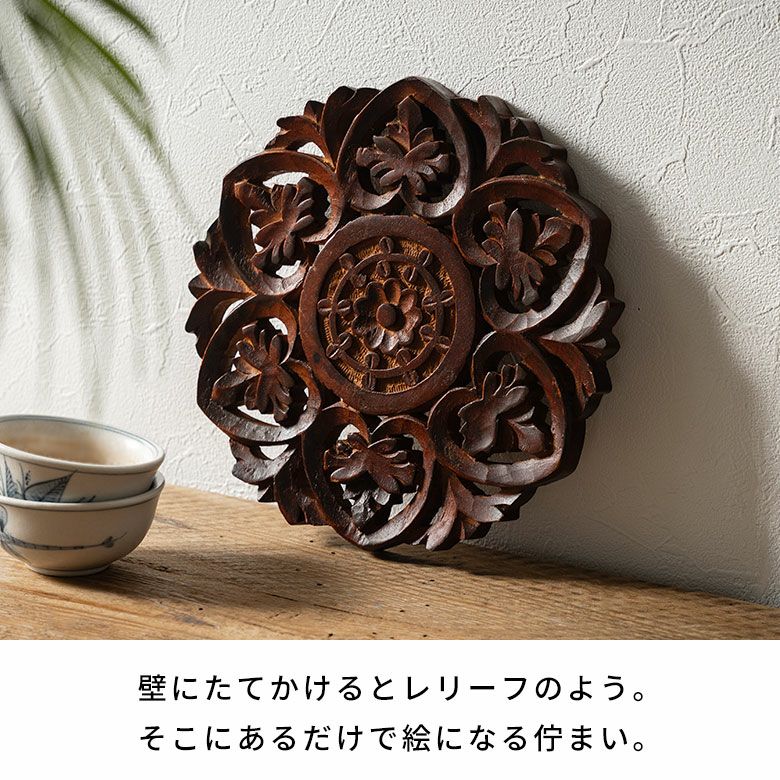 ナチュラルな木の質感と細部までしっかり彫られた模様が美しい