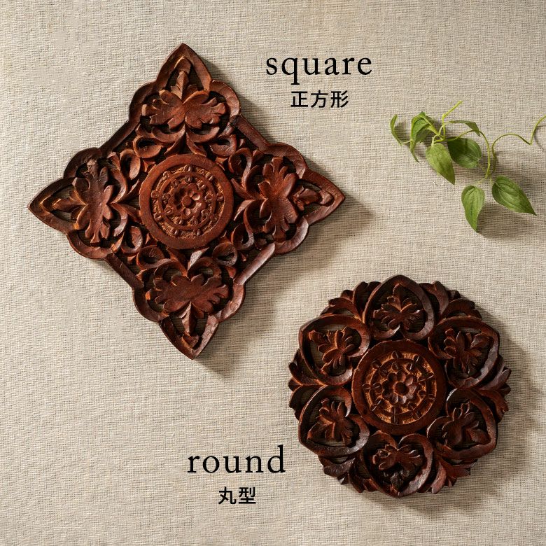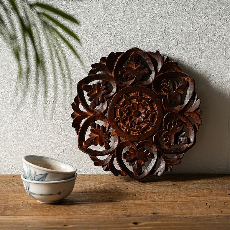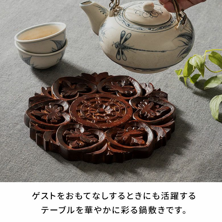 アジアンムードが高まる、美しい手彫りの鍋敷き。