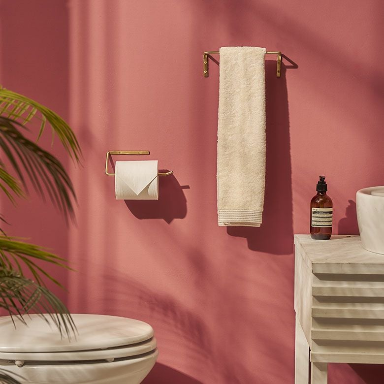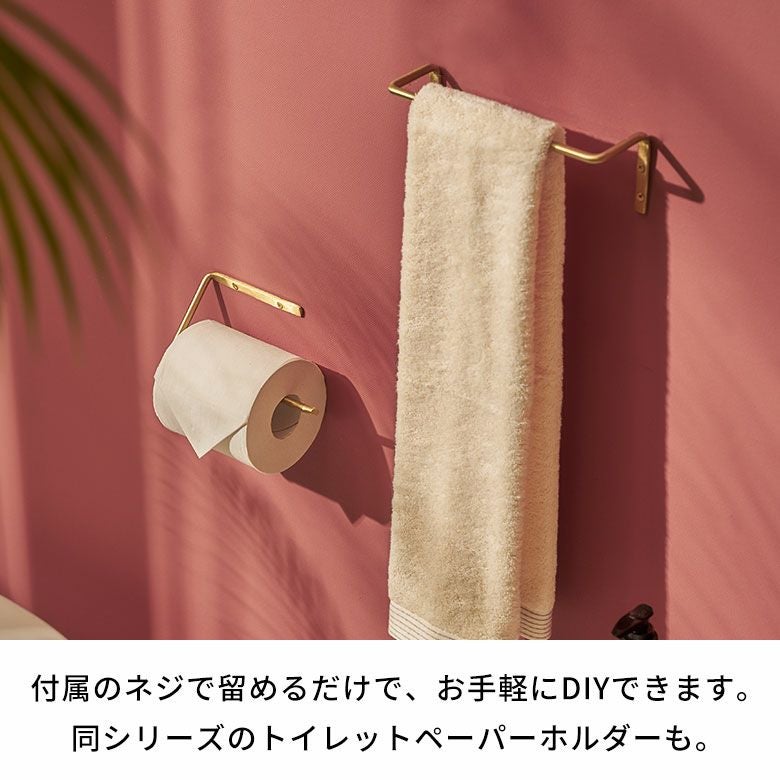 マットな質感の真鍮でできたタオルハンガー。