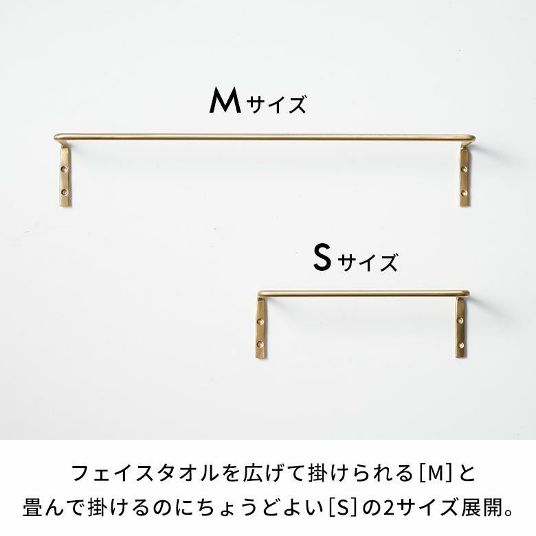 フェイスタオルを半分に畳んで掛けるのにちょうどよいSサイズ(幅約20cm)。