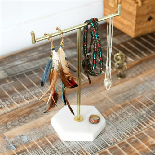 マットな質感の大理石を組み合わせたアクセサリースタンド。