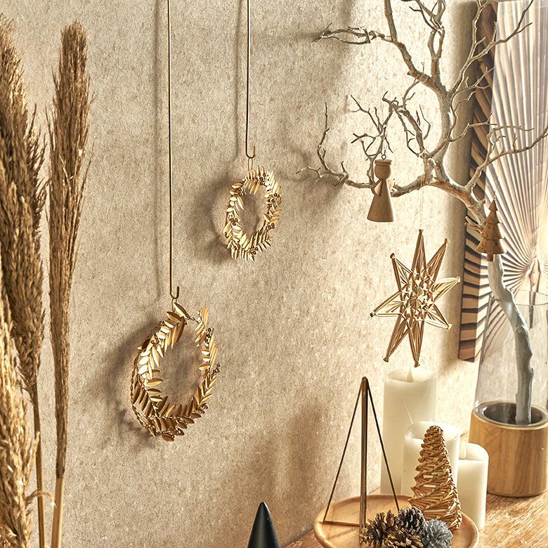 Sサイズは、小さめのリースやお正月のしめ縄飾りに。Lサイズは、一般的な円形リースにおすすめ。室内のドアにも使っていただけるので、バッグや帽子掛けとしても使えます。落ち着いたゴールドカラーは何気ない引っかけ収納をおしゃれに変えてくれます。