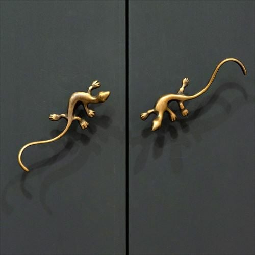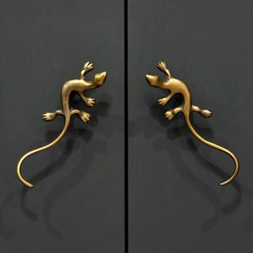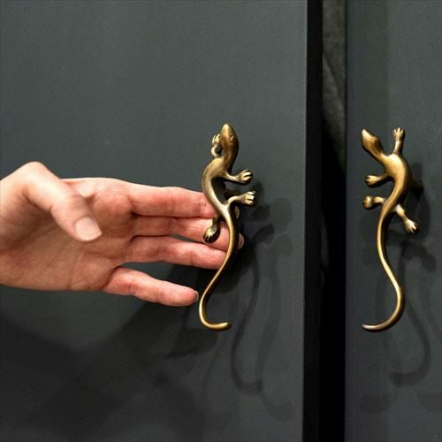 ヤモリデザインの真鍮ハンドル