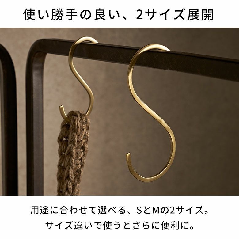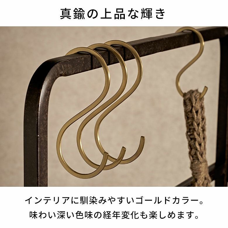 引っかけ収納に便利なS字フックを、上品な輝きの真鍮素材で作りました。