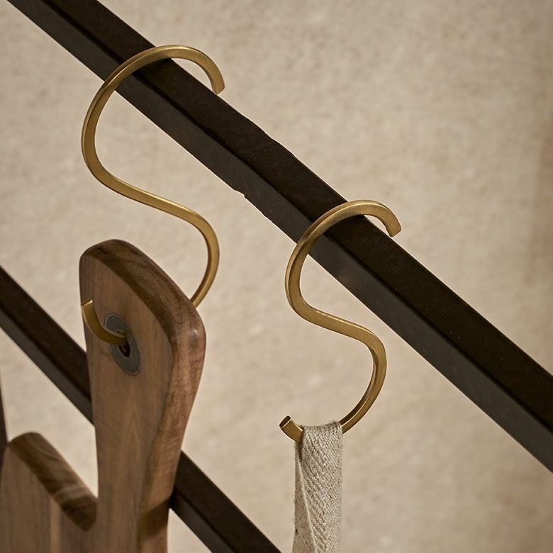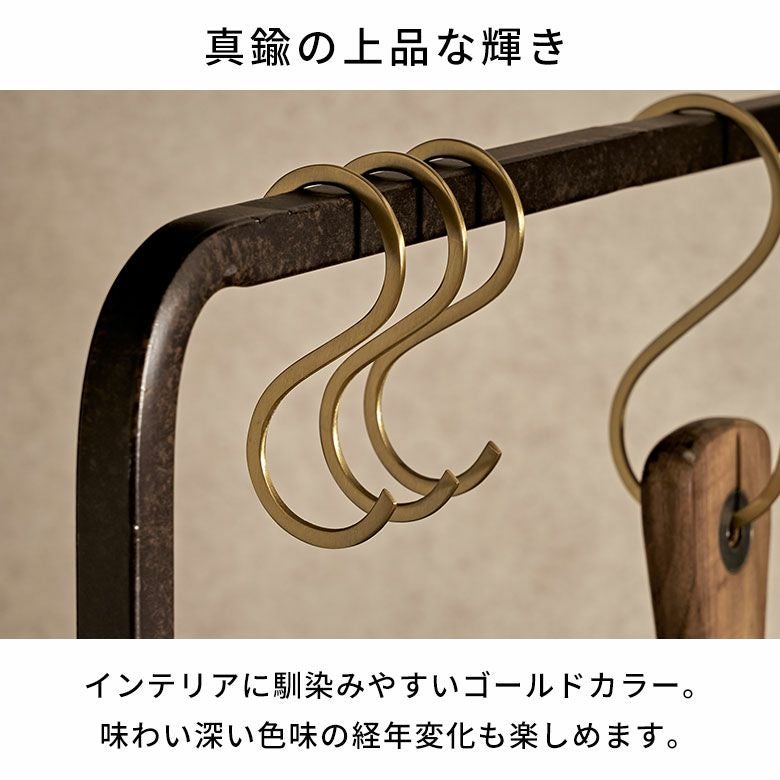 引っかけ収納に便利なS字フックを、上品な輝きの真鍮素材で作りました。