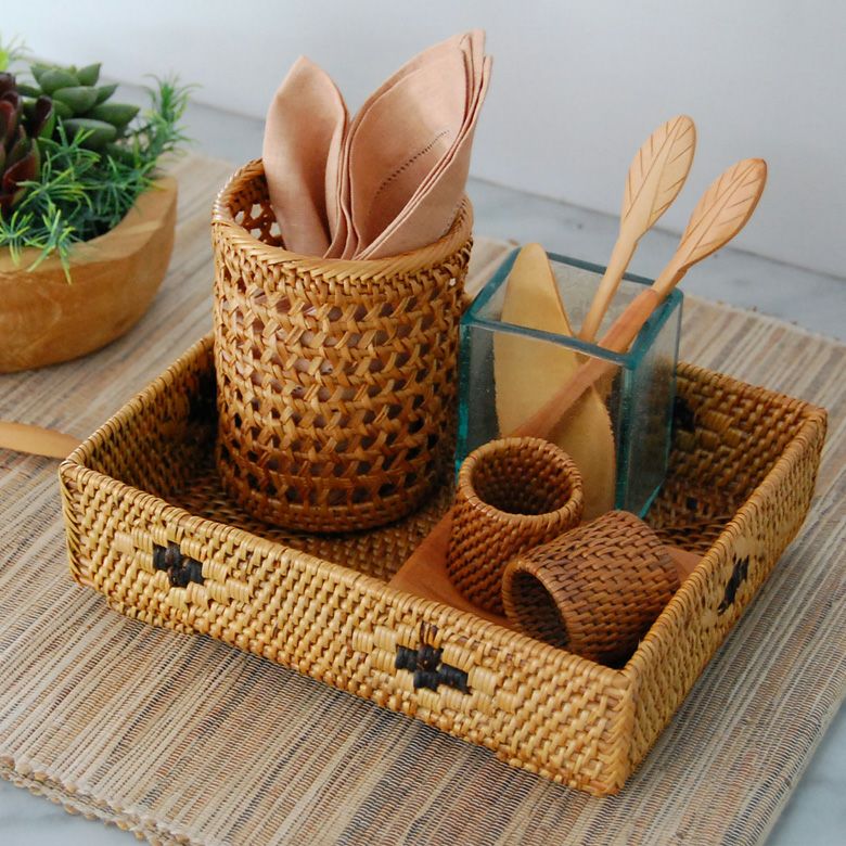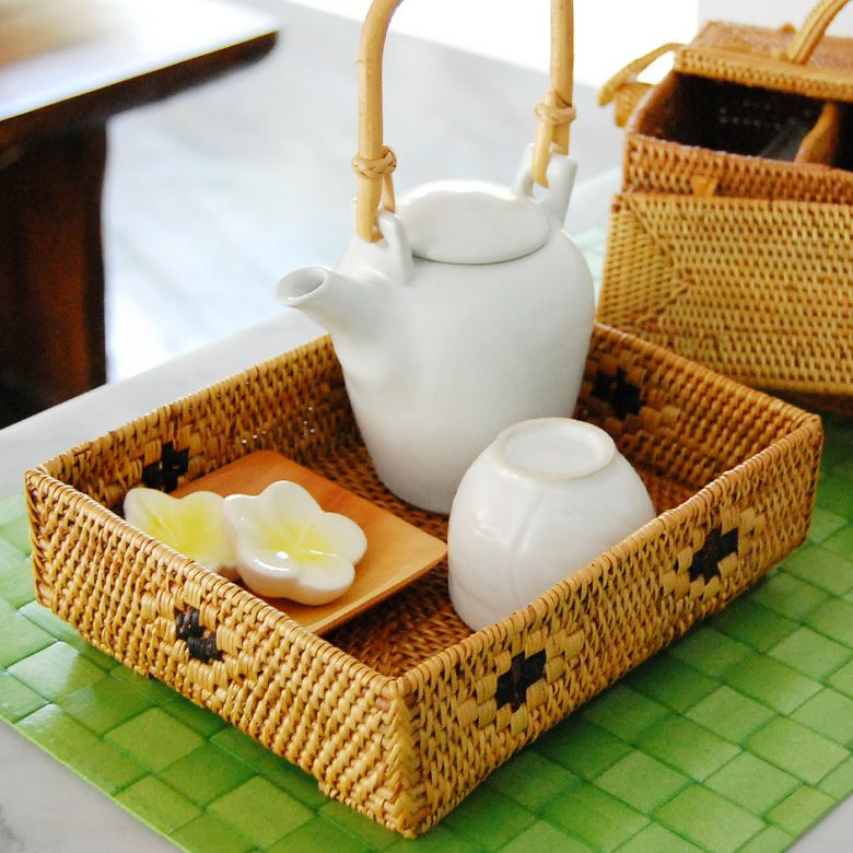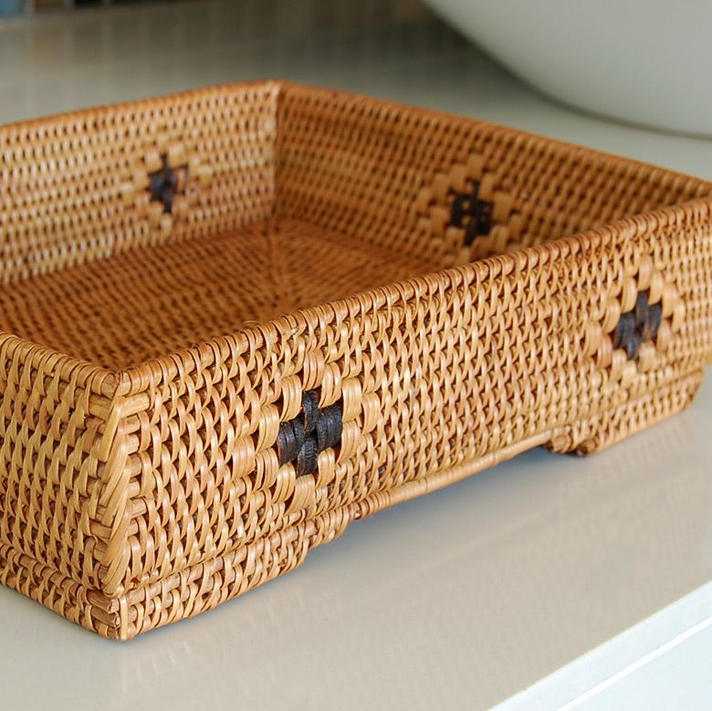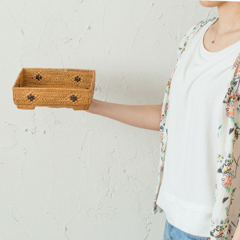 散らかる小物をすっきり収納できるバリ島の人気アジアン雑貨 アタで編まれた長方形の収納ボックス[Cタイプ][2413]【トレー かごトレイ 小物入れトレイ 収納バスケット 籠 カゴ バスケット アジアン雑貨 バリ雑貨 ボックス トレイ エスニック 収納カゴ 収納かご ナチュラル インテリア リゾート おしゃれ バリ島 アタ製品】