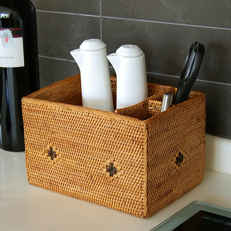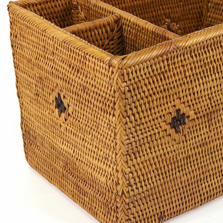 間仕切りが付いているのでリモコンスタンドやペン立てにおすすめ アタで編まれた収納バスケット 間仕切り3分割 Fタイプ ペン立て ペンたて お箸立て おはしたて リモコンスタンド リモコン立て リモコンたて 小物入れ 籠 カゴ かごバスケット 収納ケース バリ 雑貨 アジアン雑貨 バリ雑貨 整理整頓 収納家具 [2303]