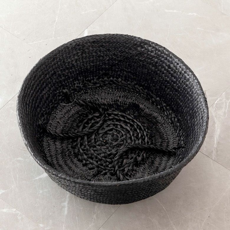 プランターカバー モダン リビング キッチン ダイニング バスケット かご Lサイズ 2way シーグラス ラウンド ブラック 黒 折りたたみ W 40cm D 40cm H 35cm [51294]【 ハンドル付き かご 籠 収納バスケット おもちゃ入れ 荷物入れ 玄関 スリッパ 収納 ランドリーバスケット おしゃれ リゾート ナチュラル バリ アジアン 雑貨 】