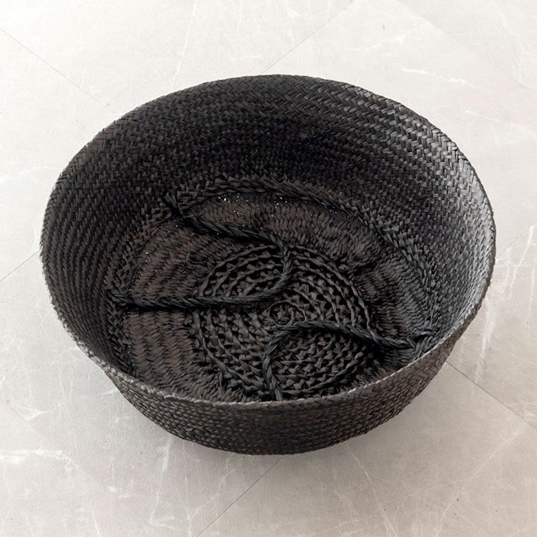 プランターカバー モダン リビング キッチン ダイニング バスケット かご Mサイズ 2way シーグラス ラウンド ブラック 黒 折りたたみ W 35cm D 35cm H 32cm [51293]【 ハンドル付き かご 籠 収納バスケット おもちゃ入れ 荷物入れ 玄関 スリッパ 収納 ランドリーバスケット おしゃれ リゾート ナチュラル バリ アジアン 雑貨 】