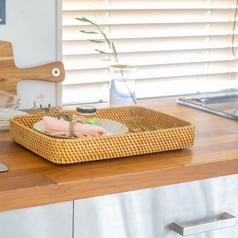 かご 籠 カゴ モダン 収納 ストッカー ホテル カフェ トレイ トレー Lサイズ ボックス ケース ラタン 籐 ホワイト ナチュラル 約 W 35cm D 26cm H 6cm [13979]【 アメニティトレイ カフェトレイ ファイルトレイ お盆 小物 書類 ファイル 入れ キッチン ダイニング アメニティ 北欧 リゾート コースタル バリ アジアン 雑貨 】