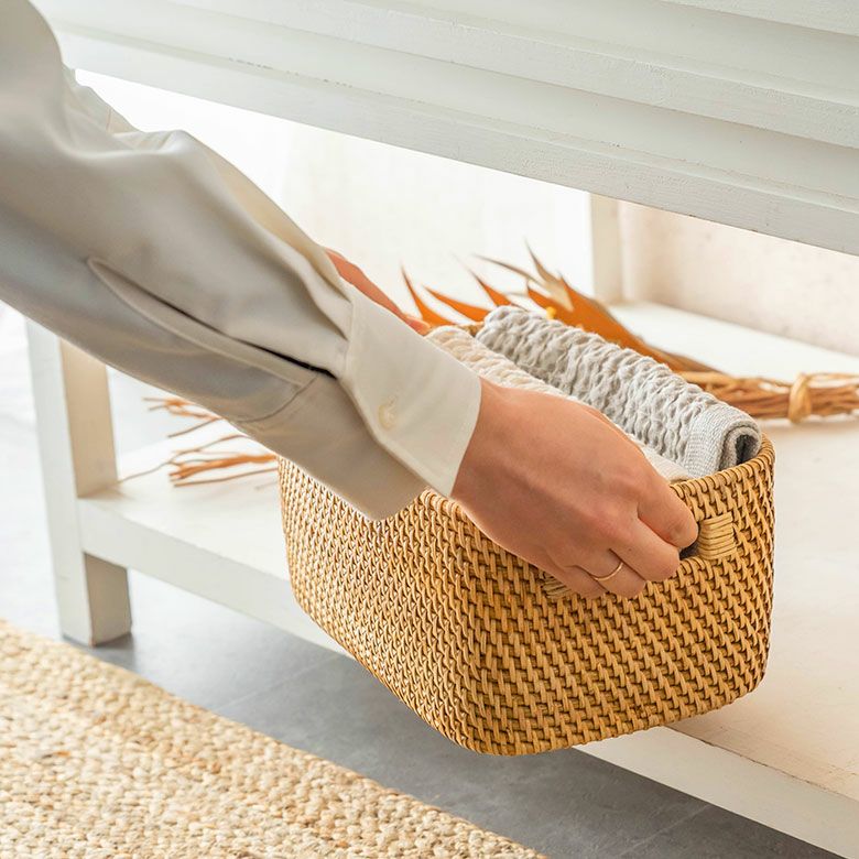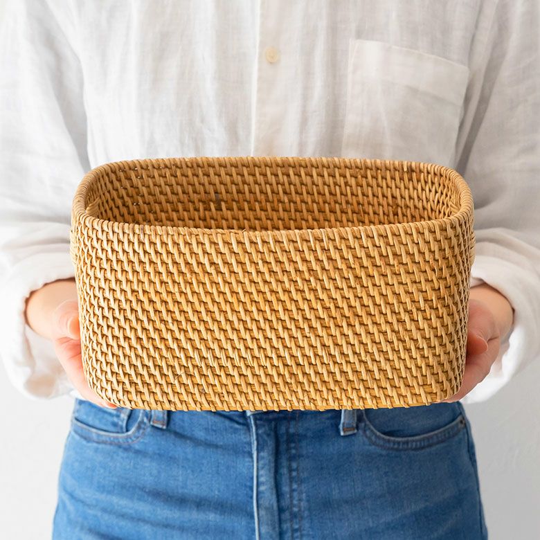 持ち手付き 引き出し モダン 収納 ストッカー ホテル カフェ バスケット かご 籠 カゴ ボックス ケース ラタン 籐 ホワイト ナチュラル 約 W 20cm D 28cm H 13cm [13980]【 荷物 おもちゃ 書籍 CD DVD タオル ドライヤー 調味料 入れ リビング キッチン ダイニング アメニティ 北欧 リゾート コースタル バリ アジアン 雑貨 】