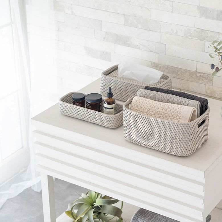 かご 籠 カゴ モダン 収納 ストッカー ホテル カフェ トレイ トレー Sサイズ ボックス ケース ラタン 籐 ホワイト ナチュラル 約 W 25.5cm D 10cm H 5cm [13978]【 アメニテトレイ カトラリートレイ ペントレイ 小物 用品 入れ キッチン ダイニング カトラリー アメニティ 北欧 リゾート コースタル バリ アジアン 雑貨 】