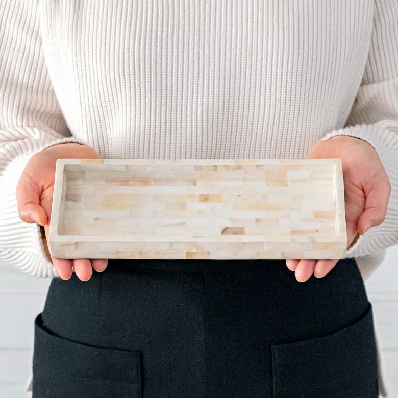 パルシェ 真珠貝 ハンドメイド かわいい ナチュラル トレイ おしゃれ 大サイズ 約 W 10cm D 25cm H 2.5cm 長方形 アクセサリートレー アクセサリートレイ トレー 小物入れ ケース パール シェル [vn51138]【 収納 小物ケース アクセサリー 来客用 タオル置き リゾート エレガント 高級感 アジアン雑貨 バリ雑貨 】