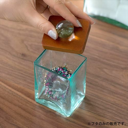 ガラスケースにぴったりなウッド製フタ 【2色展開】フタ ウッド ガラス 取っ手付き ガラスケース6×5cmハイタイプ用 66308【ガラス ガラスケース フタ ウッド チークウッド 雑貨 コットンケース アメニティ バスルーム 洗面所 化粧品 収納 木製】