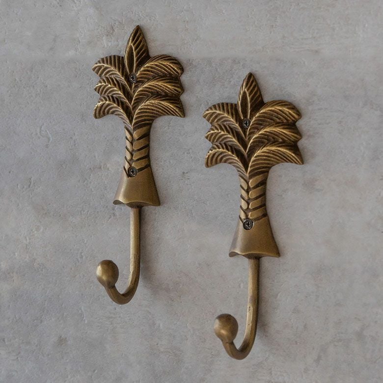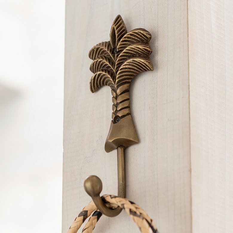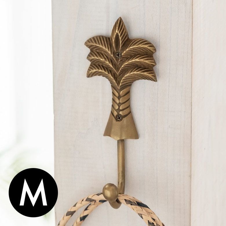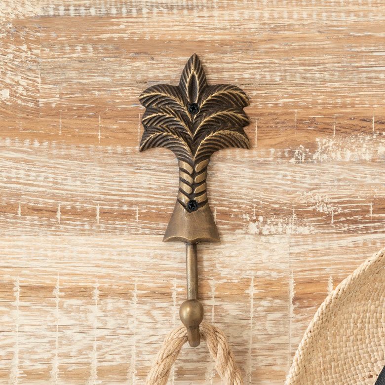 フック 壁掛け 引掛け ひっかけ 壁面 DIY 金属 金物 レトロ アンティーク風 おしゃれ インテリア 玄関 カーテン 棚 ラック キッチン 吊り下げ ハンガー 帽子 ストール フック パームツリー型 Mサイズ 縦約14.5cm アンティーク風 真鍮製 木ネジ付 [13743]【 壁掛けフック 壁フック ウォールフック シングルフック ヤシの木 ブロンズ アイアン 洗面所 トイレ ドア 壁掛け収納 アジアン 雑貨 アジアン雑貨 南国リゾート ハワイ バリ島 】