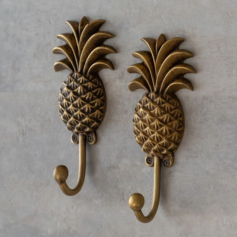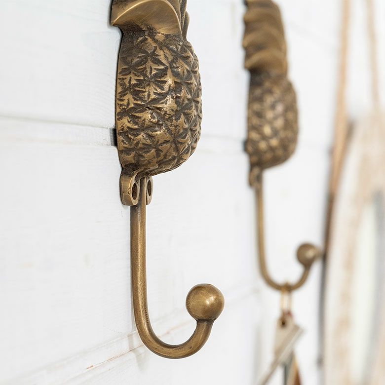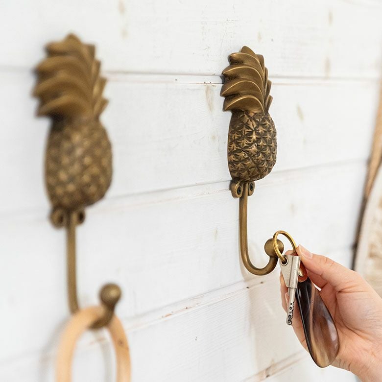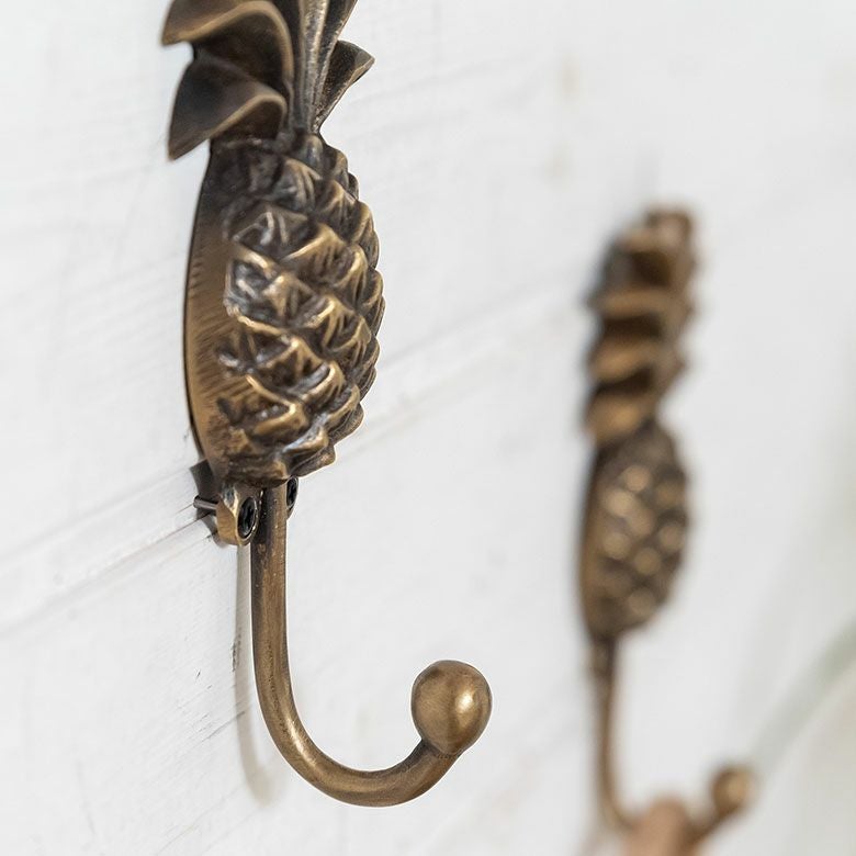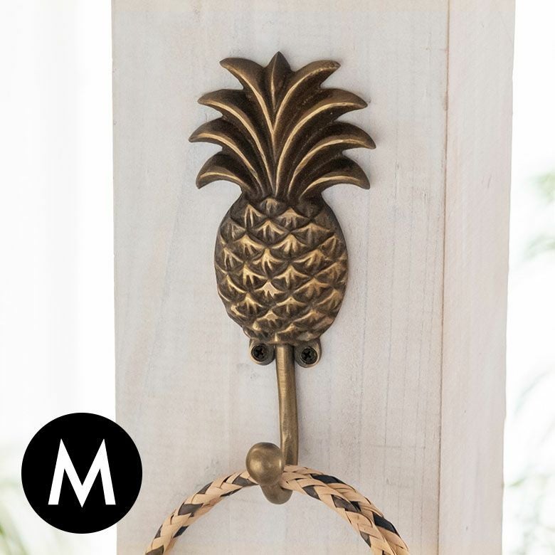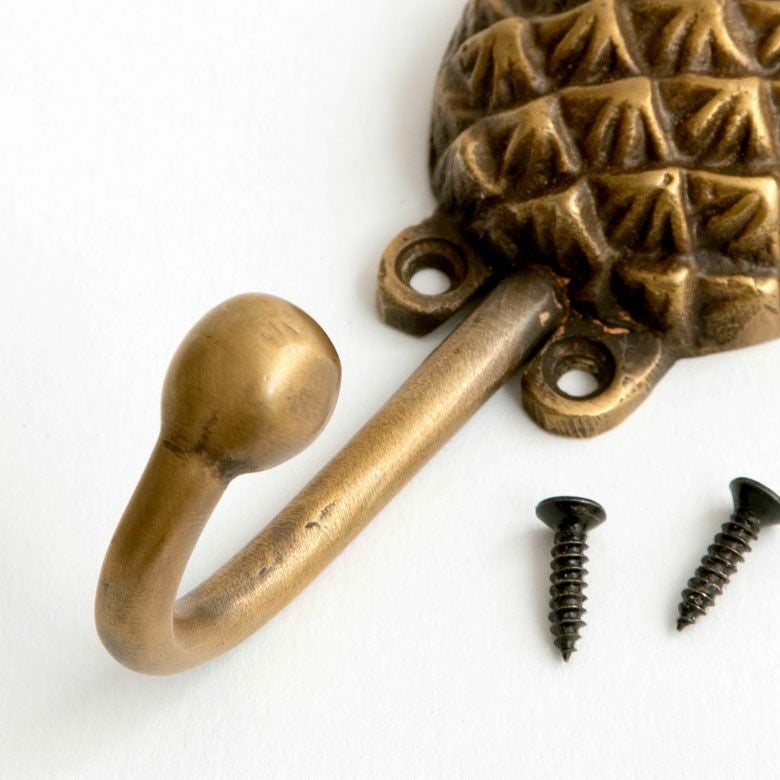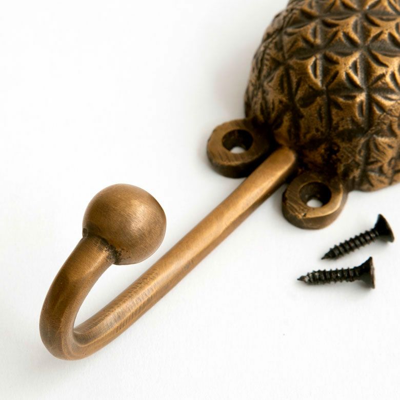 フック 壁掛け 引掛け ひっかけ 壁面 DIY 金属 金物 レトロ アンティーク風 おしゃれ インテリア 玄関 カーテン 棚 ラック キッチン 吊り下げ ハンガー 帽子 ストール フック パイナップル型 Mサイズ 縦約14.5cm アンティーク風 真鍮製 木ネジ付 [13744]【 壁掛けフック 壁フック ウォールフック シングルフック パイナップル ブロンズ アイアン 洗面所 トイレ ドア 壁掛け収納 アジアン 雑貨 アジアン雑貨 南国リゾート ハワイ バリ島 】