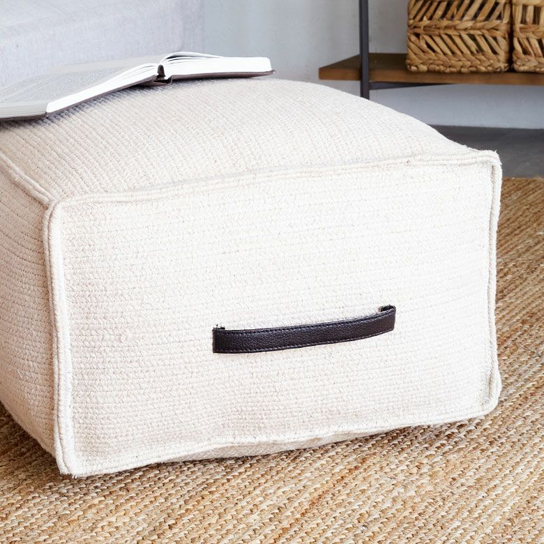 角がすっきりとしたデザインの、シンプルなプフクッション。