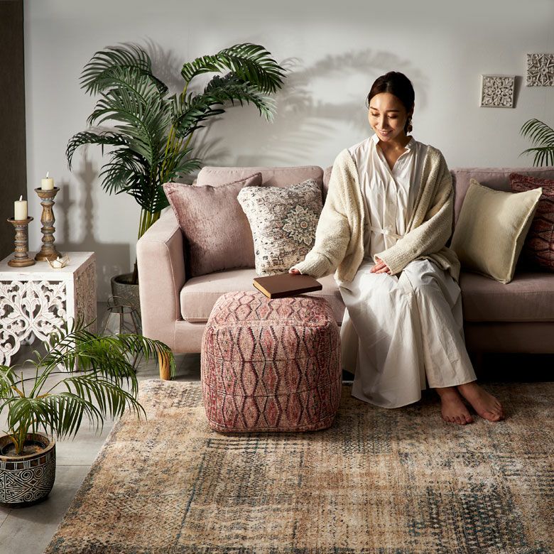 まるでオールドキリムのような細かな柄と、表情豊かな色彩がお部屋を華やかに彩ります。