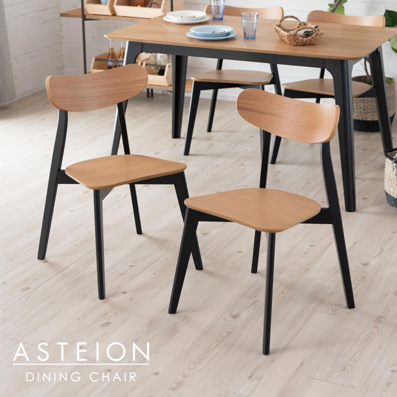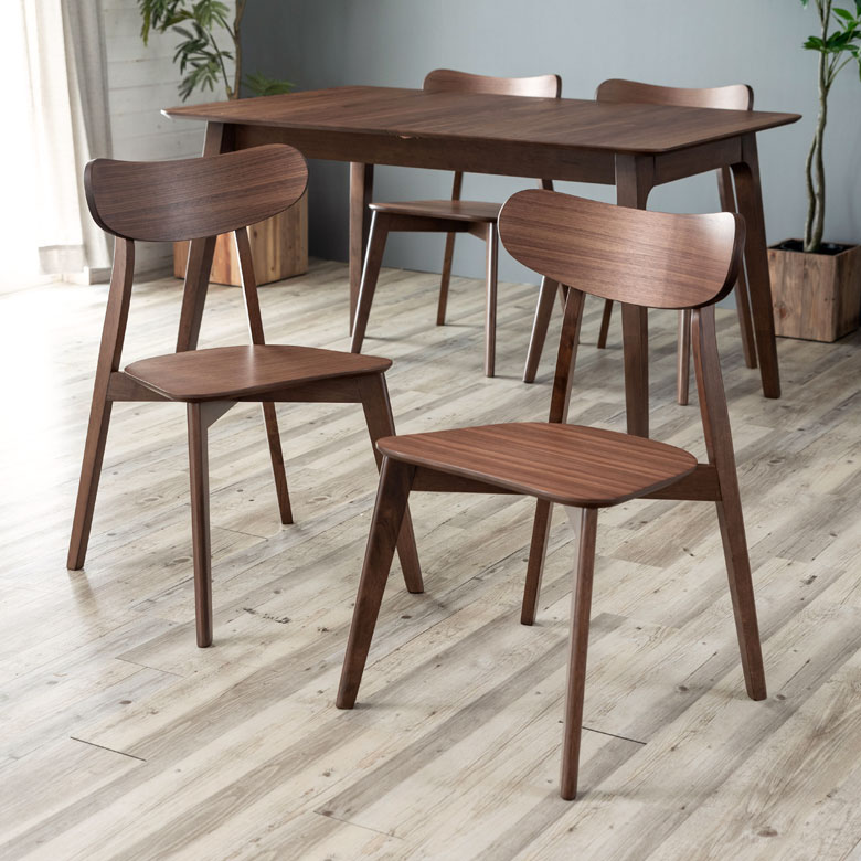 座面と背もたれに天然木の突板を使用した、木目の美しいダイニングチェア。