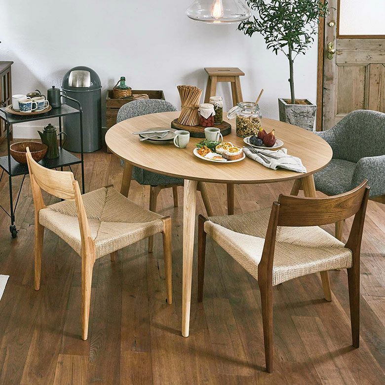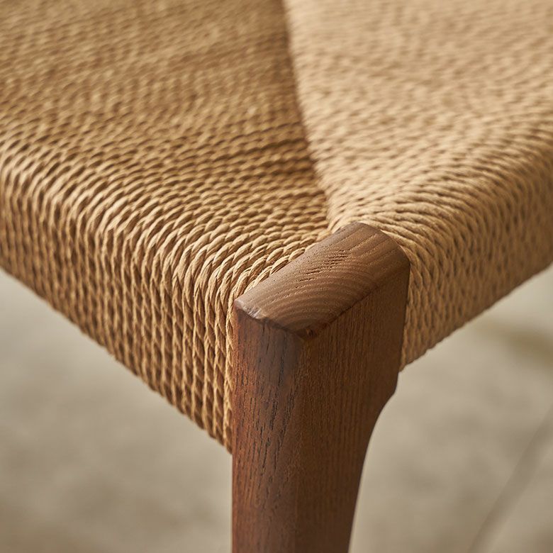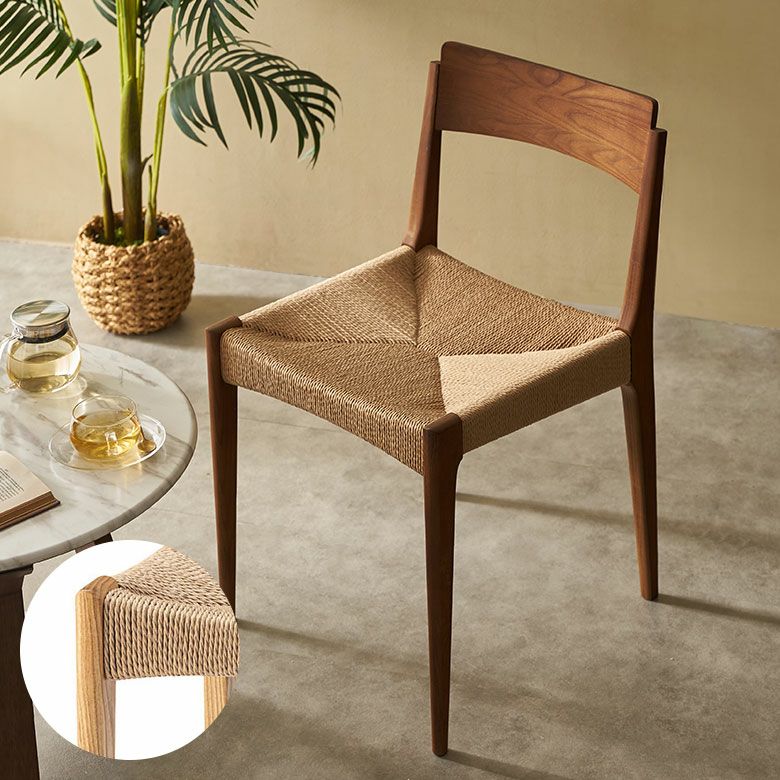 座面にペーパーコードを張った、ナチュラル感あふれる木製チェア。