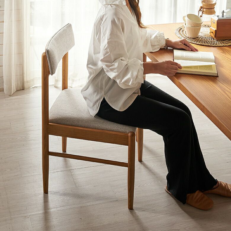 細めのウッドフレームが上品な印象のダイニングチェア。