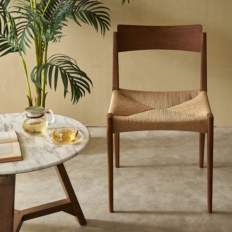 座面にペーパーコードを張った、ナチュラル感あふれる木製チェア。