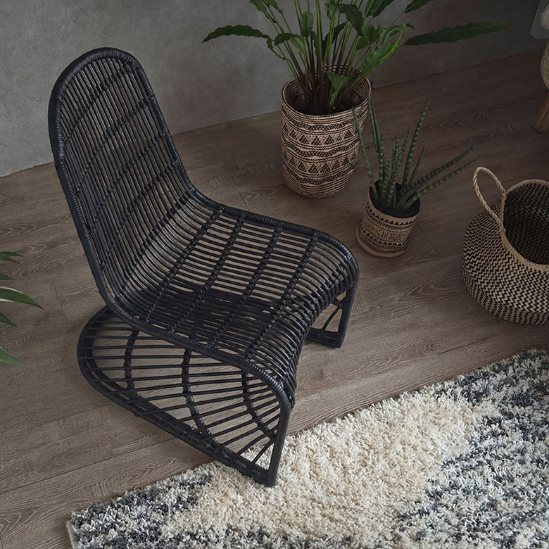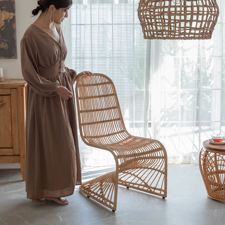 この曲線美は、自由に曲げられる特性を持つラタンならでは。