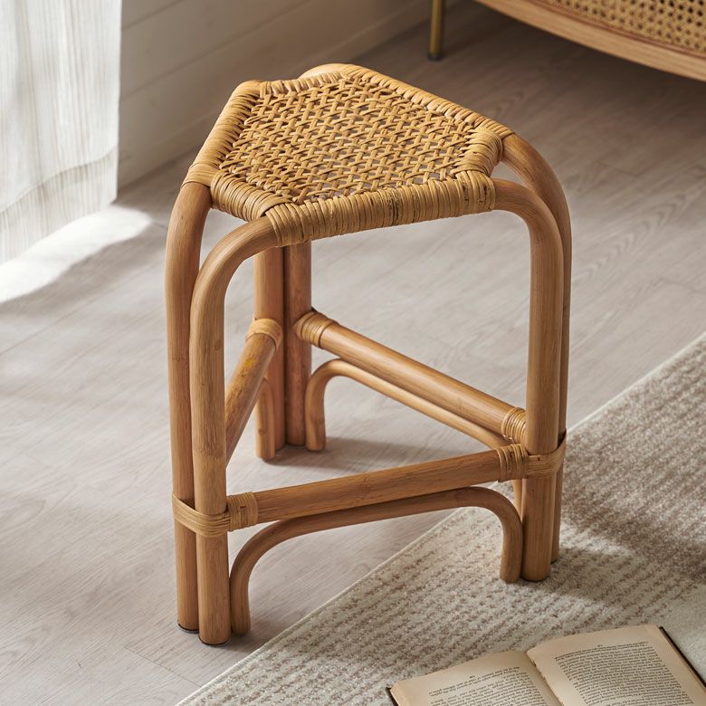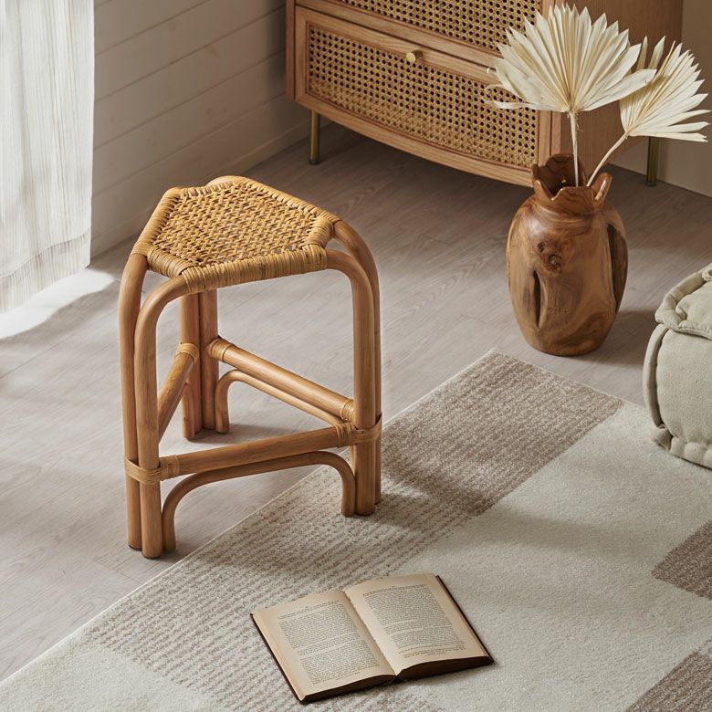 天然素材ならではの風合いを活かした三角形のラタンスツール。
