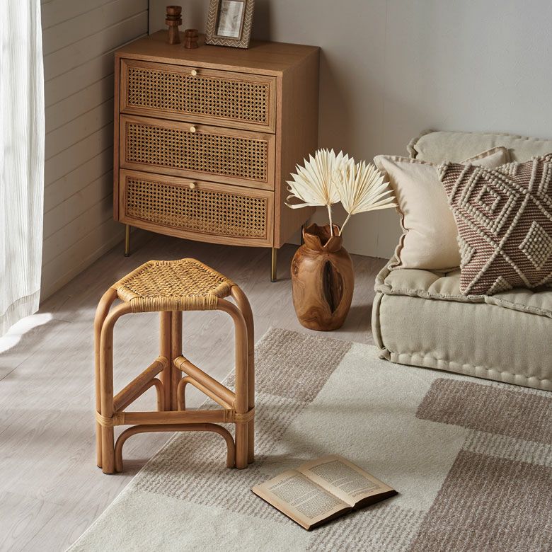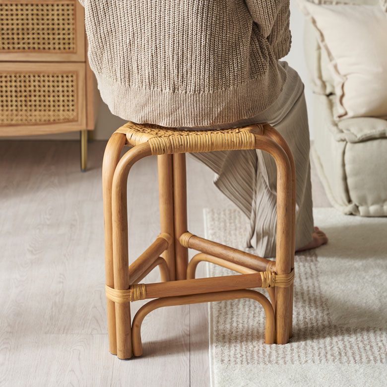 天然素材ならではの風合いを活かした、ラタンスツール。