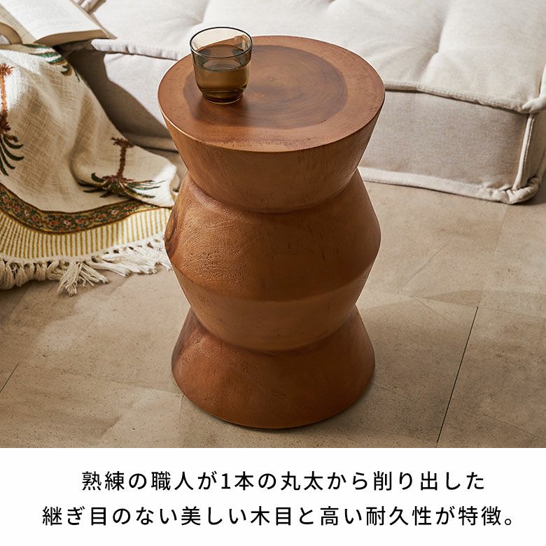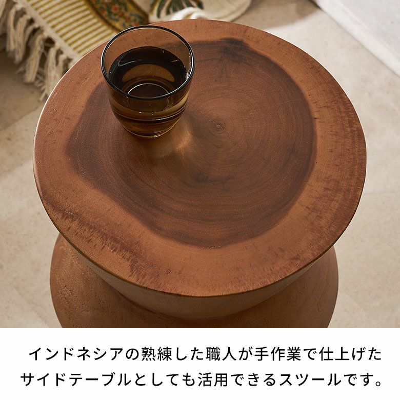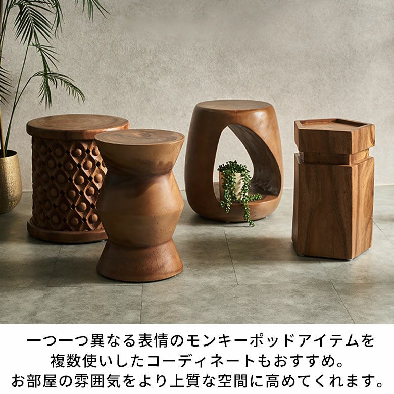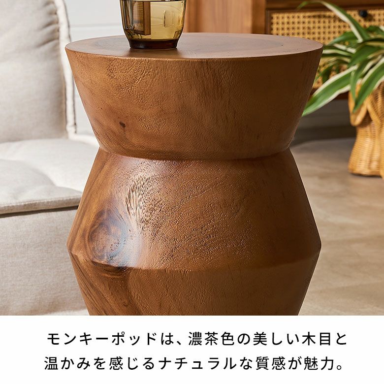 ・モンキーポッドの美しい木目をお楽しみいただける木彫りのスツール