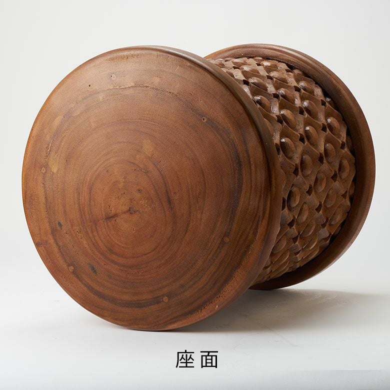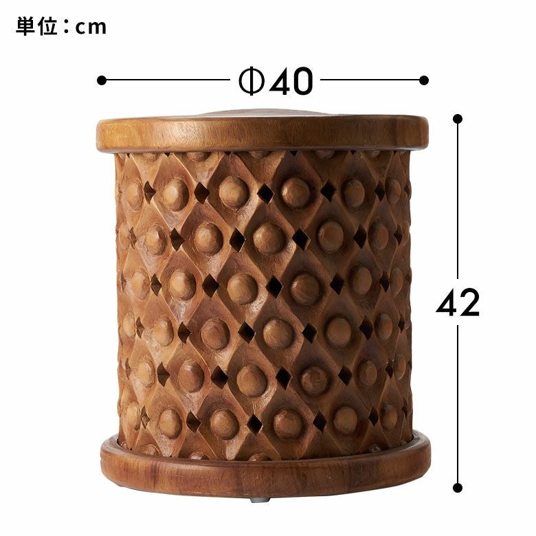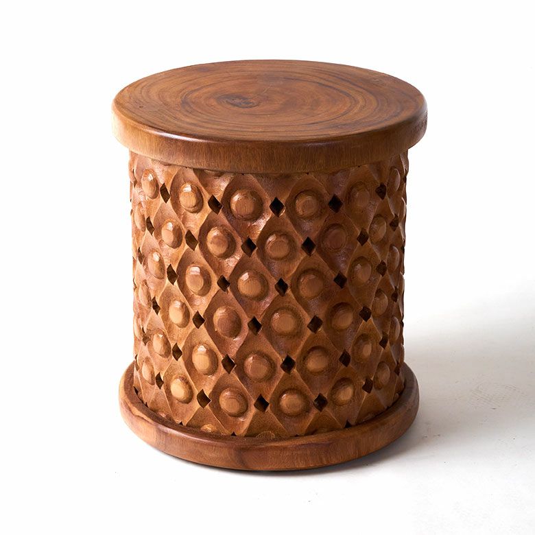 木彫りのスツール [ フラワーグリッド ]